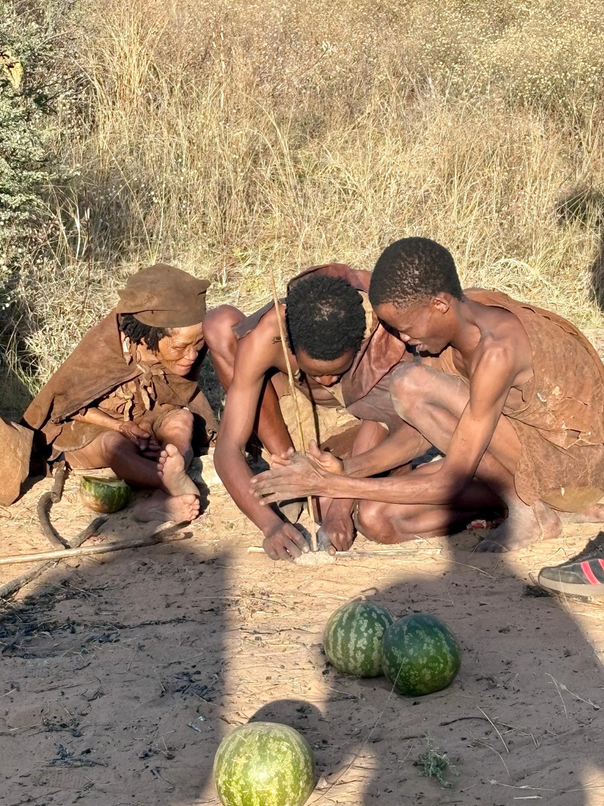 In der Kalahari begegnen wir den San, den Ureinwohnern der Wüste, und lernen, wie sie mit Pflanzen überleben – uralte Weisheit, die uns tief berührt. Inmitten uralter Baobabs schlafen wir unter Sternenhimmel, wo selbst das Schweigen voller Geschichten steckt.