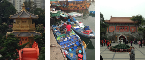 Mein persönliches Highlight: die mystische Atmosphäre auf Lantau Island beim Besuch der großen Buddha Statue (Big Buddha). Sitzend, 34 Meter hoch und den Blick nach Norden gen China gerichtet, zieht der majestätische bronzene Buddha Pilger aus ganz Asien an. Nach 268 Stufen erklimmen wir diese bemerkenswerte Statue, deren Fertigstellung 12 Jahre dauerte. Gegenüber der Statue befindet sich das Po Lin Kloster, eines der bedeutendsten buddhistischen Heiligtümer Hong Kongs und als "Buddhistische Welt im Süden" bezeichnet. Als Heimstadt vieler strenggläubiger Mönche ist das Kloster reich an farbenfrohen Manifestationen, und der paradiesische Garten ist belebt mit Vogelgesang und Blütenduft. Die Stimmung und Aussicht dort ist unbeschreiblich.